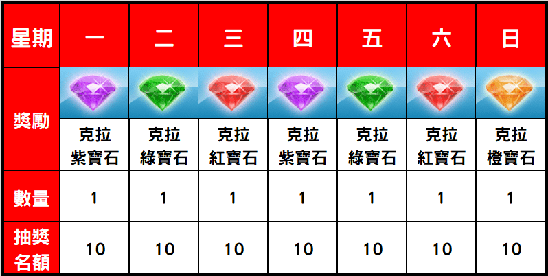- 活動獎勵於每階段活動結束後,隔週二維護時發放。