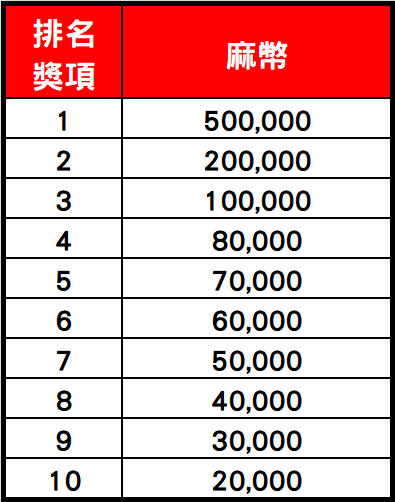 【麻將積分賽 - 排名獎說明】