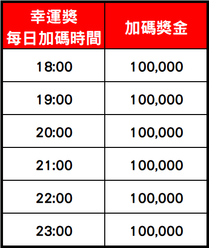 - 幸運獎獎金實際加碼時間可能會有些許誤差,最終以系統判定為主。