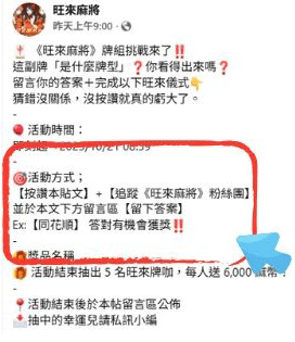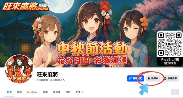 活動期間登入您的Facebook並追蹤「旺來麻將粉絲團」。