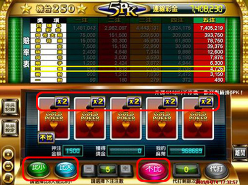 這裡值得注意的是,進行「五關比大小」的闖關遊戲時,若闖關成功,可自由選擇是否繼續比,若選「不比」可直接獲得目前已加倍的獎金、若選擇繼續比大小而闖關失敗,所有獎金都會被系統收回! |